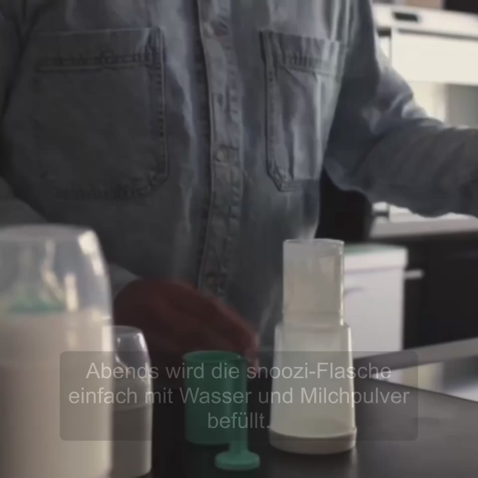 snoozi Nachtflaschen mit Wasser + Milchpulver füllen & auf den Flaschenwärmer stellen